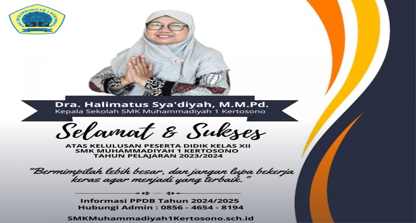 Dengan penuh rasa hormat dan penghargaan, kami keluarga besar SMK Muhammadiyah 1 Kertosono menyampaikan terima kasih yang sebesar-besarnya kepada Ibu Dra. Hj. Halimatus S